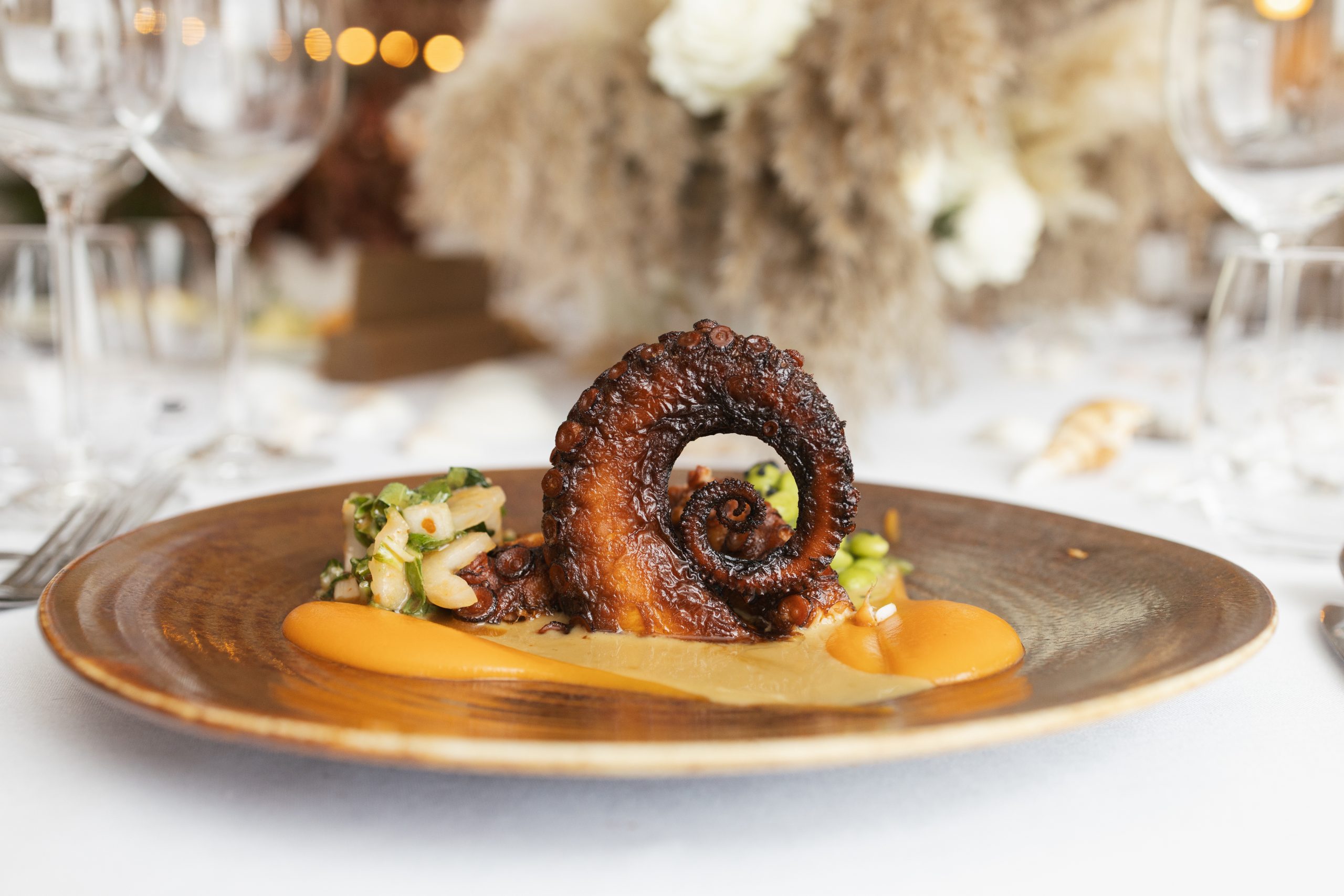 Ośmiornica z edamame, pak choi, purée z batatów i sosem orientalnym 320 g / 198 zł