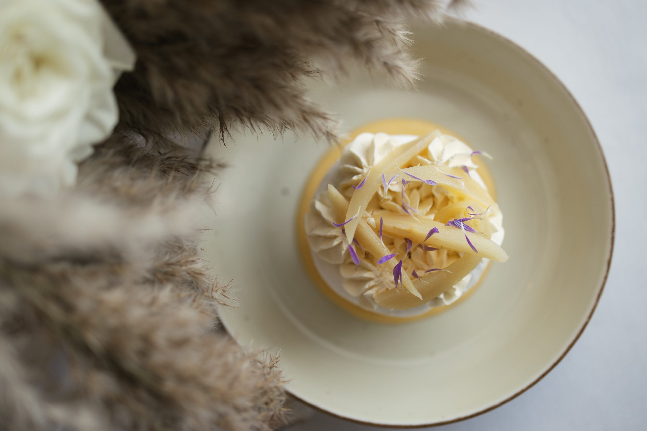 Mus z białej czekolady z ciastem cygaretkowym, calamansi i mango 140 g / 47 zł