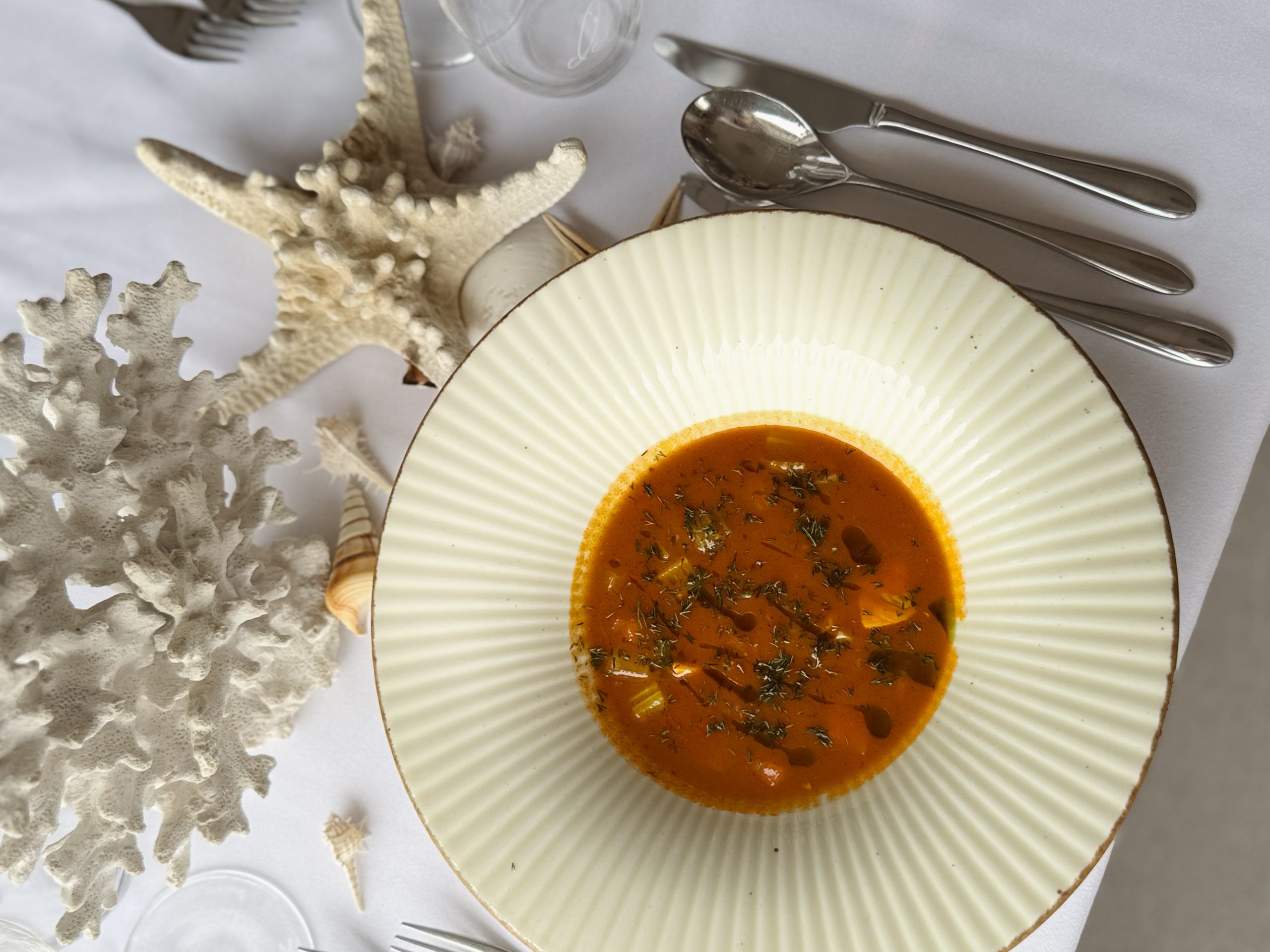 Pikantna zupa rybna z Łososiem Mowi Supreme, pomidorami, selerem naciowym i koperkiem (250 ml) 59 zł